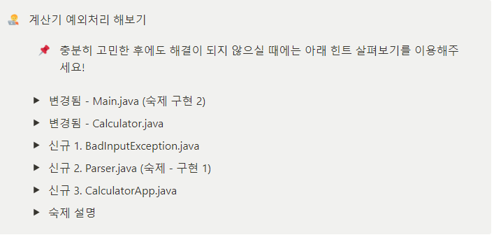 이번과제는 저번시간에 만든 계산기프로그램에 예외처리를 기능을 추가하는 것이다.