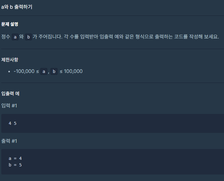 System.out.println("a = "+a +"\n"+ "b = "+b);