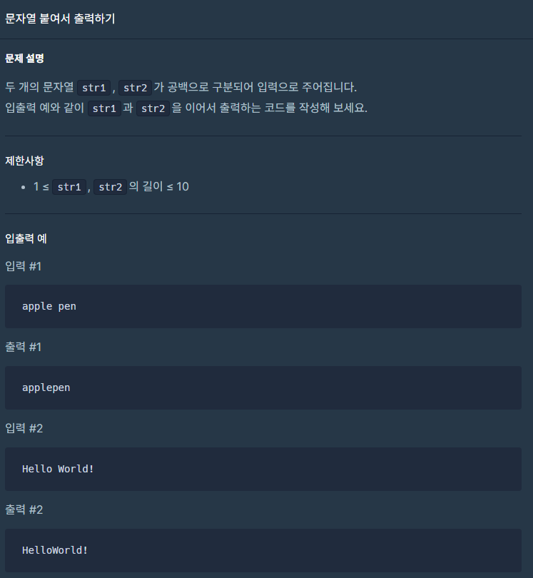 기본적인 문제다. 두 문자열을 합쳐서 출력해 주면 공백은 사라져서 출력된다.