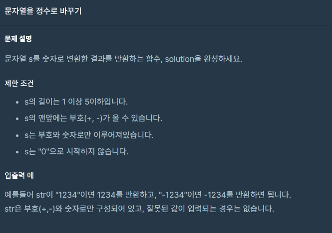 간단한 문제다. s를 정수형으로 변환해서 answer에 대입하고 반환해 주면 된다.