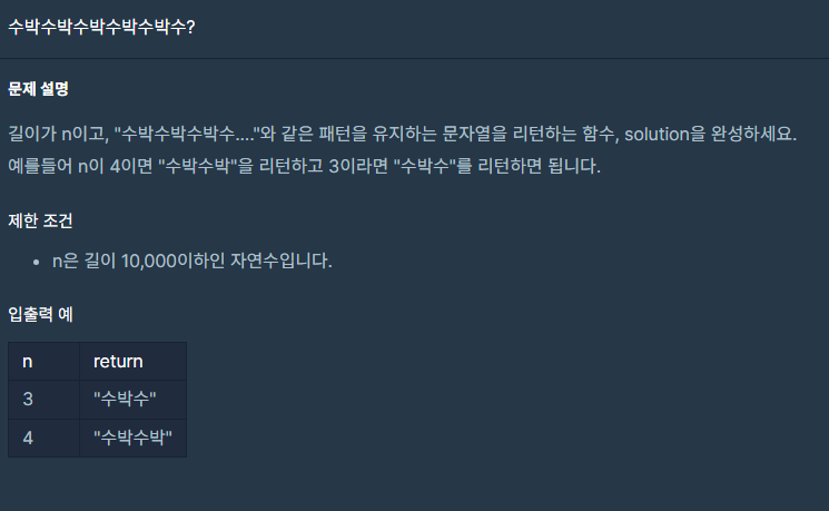 간단한 문제다. for문을 사용해서 차례대로 수, 박을 넣어주고 answer을 반환했다.