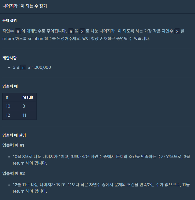 간단한 문제다. while문을 실행하게 하고 n에서 answer을 나눠서 1이 되면 break를 해줬다. answer은 1씩 더해준다. 그 뒤 answer값을 반환해 줬다.