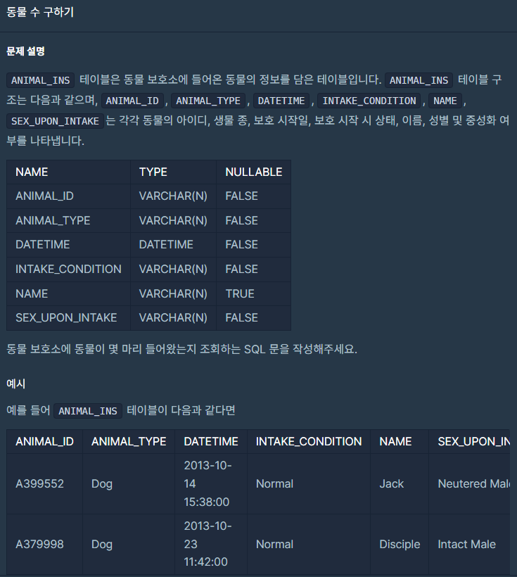 ANIMAL_INS 테이블에서 모든 레코드 개수를 조회하였다.
