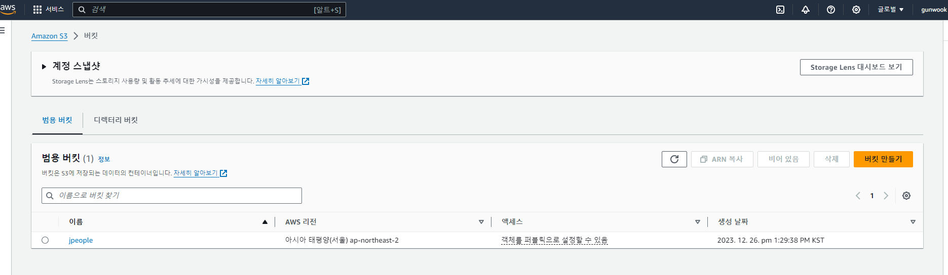 위와 같이 버킷이 생성이 되었다면 [다음]으로 넘어간다.