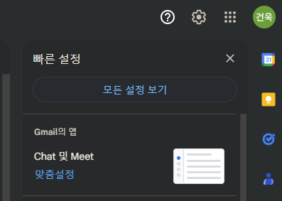 오른쪽 상단의 톱니바퀴 버튼을 누른 뒤 <모든 설정 보기> 버튼을 클릭합니다.