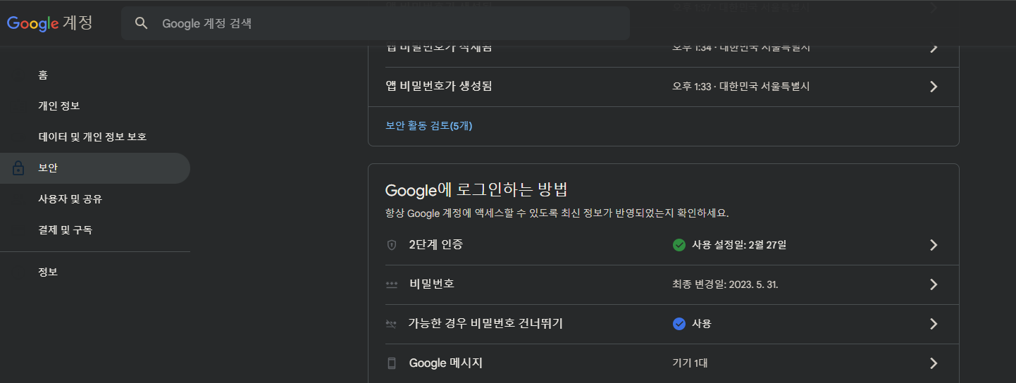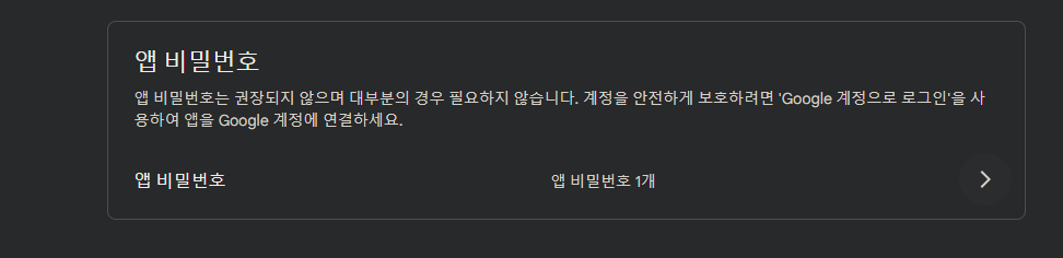 스크롤을 제일 밑으로 내리면 앱 비밀번호 탭이 있습니다. 클릭해 줍니다.