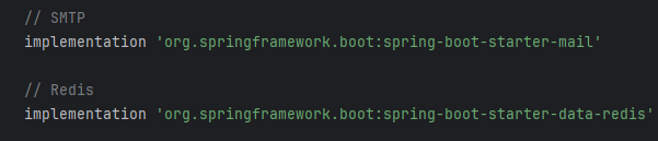 SMTP와 Redis의 의존성을 build.gradle에 추가해 줍니다.