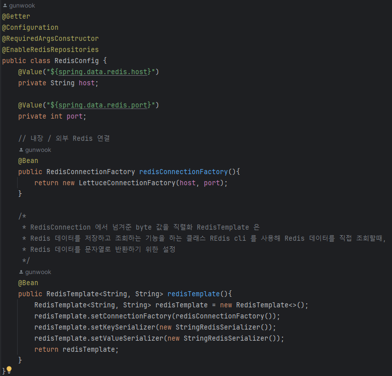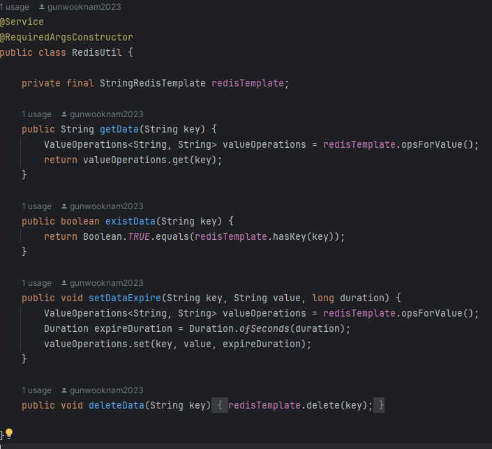 * Redis 데이터를 저장하고 조회하는 기능을 하는 클래스 REdis cli 를 사용해 Redis 데이터를 직접 조회할때,