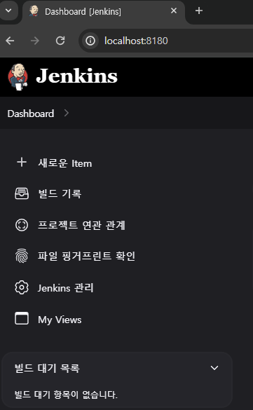 설정해 둔 포트인 8180을 통해 접속하면 Jenkins가 뜬다. 만약 설치하라는 창이 나오면 2가지의 선택지가 뜬다. 여기서는 왼쪽의 선택지를 택해주면 된다.