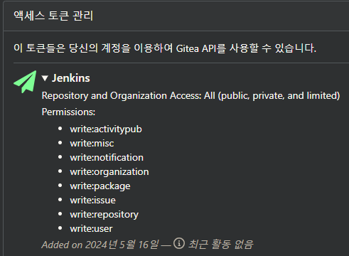 Git에서 액세스 토큰을 하나 만든 후 권한을 부여했다.