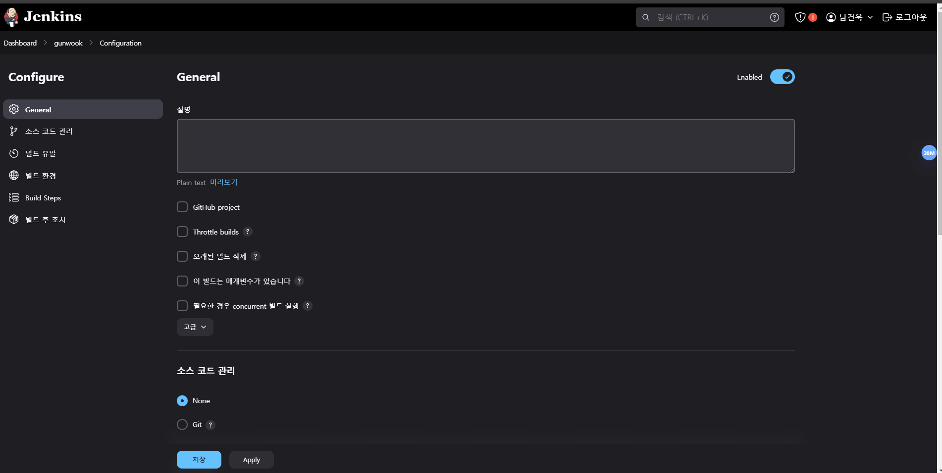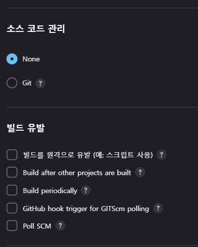 소스코드 관리는 None -> Git으로 변경