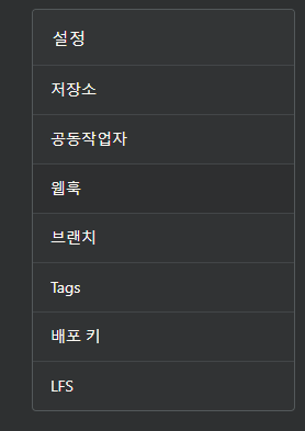 Jenkins를 사용할 레포지토리의 설정에 들어간다. 웹훅이라는 탭을 클릭한다.