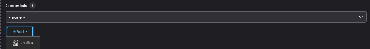 Credentials의 설정법은 하단의 +Add를 눌러주고 Jenkins를 클릭한다.