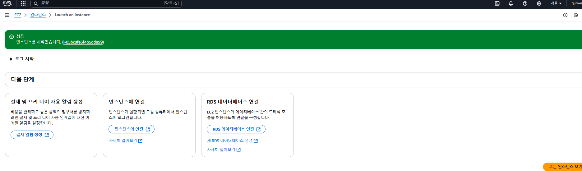 이제 우측의 인스턴스 시작을 눌러주자.