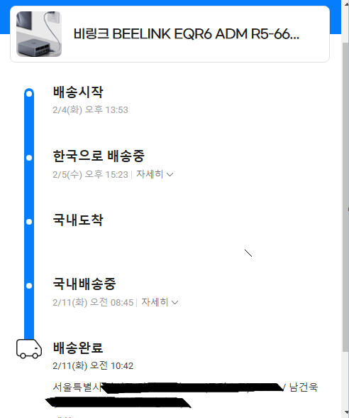2025/2/4(화)에 시켜서 2025/2/11(화)에 받았다. 해외배송이었고 딱 1주일 걸렸다. (G마켓 구매)
