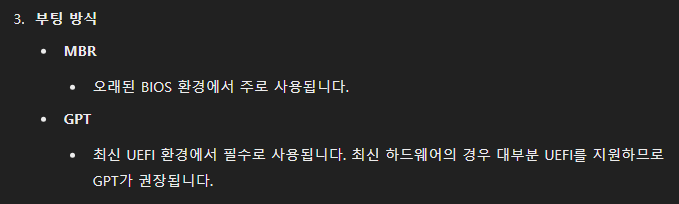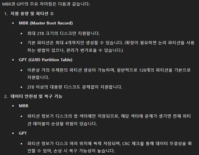 <참고> 파티션 구성(MBR, GPT 차이) AI 답변
