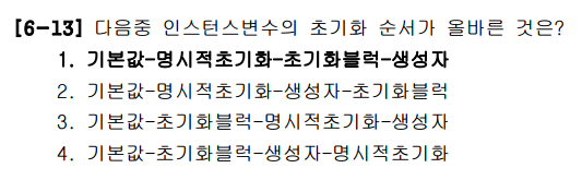 3번 초기화 블럭보다 생성자가 먼저 수행된다고 되어있다. 초기화에서는 블럭이 생성자보다 먼저 생성된다.
