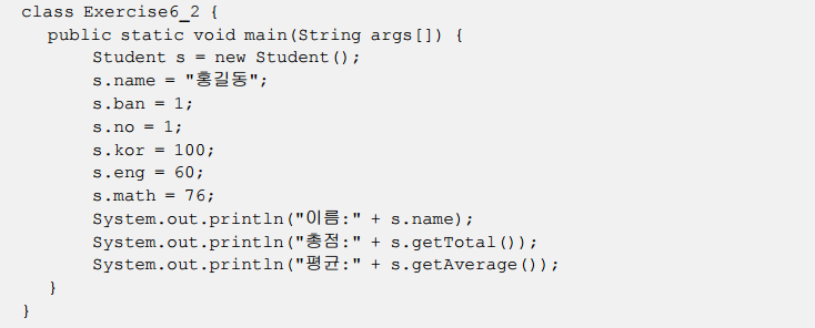 Student s = new Student(" ",1,1,100,60,76); 홍길동