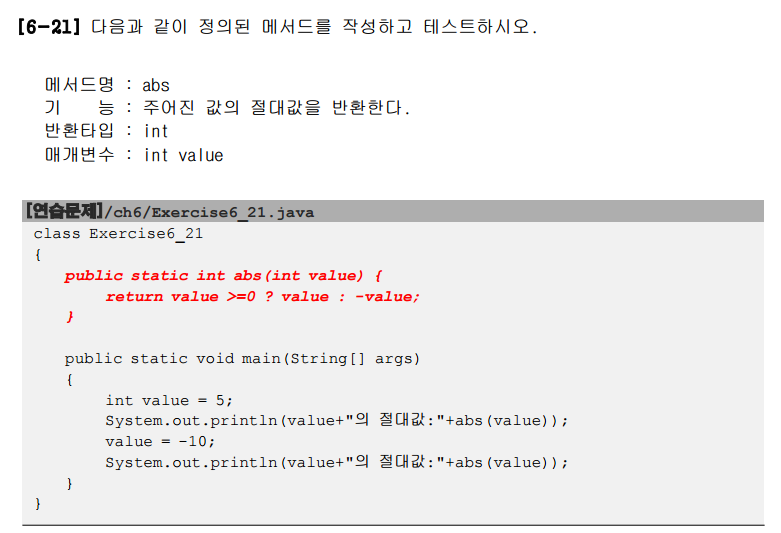 abs 메서드만 만들어 주면된다. 절대값을 반환하는 방법은 간단하다. int형 value를 매개변수로 넘겨받았으니