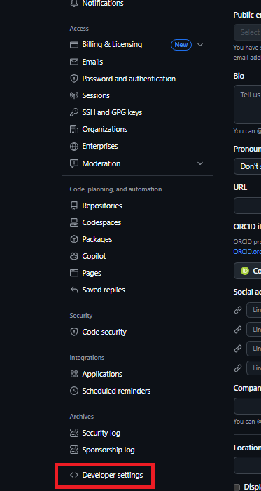 제일아래 [Developer settings]를 클릭해 준다.