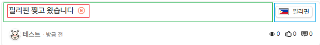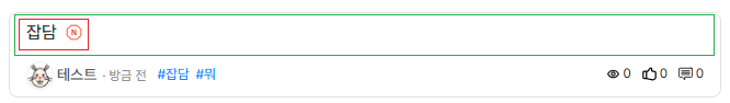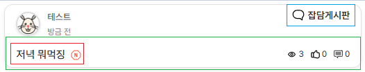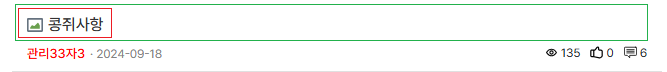 - 기존에 빨간색 박스를 클릭해야 상세페이지로 넘어갔다. 수정 후에는 초록색 박스 안에 어디든 클릭하면 상세페이지로 넘어가게 했고, 파란색 게시판 카테고리 부분을 클릭하면 해당 카테고리 페이지로 넘어가게 했다.