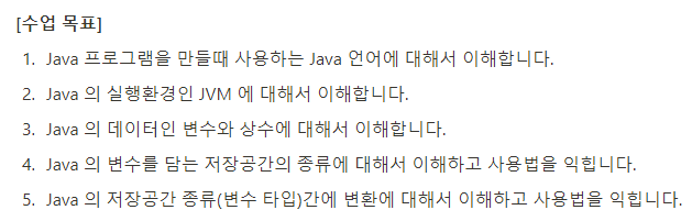 Java의 기본에 대해 이해하고 기본 문법들을 배우는 수업으로 생각하고 참여하였다.