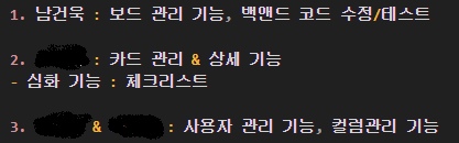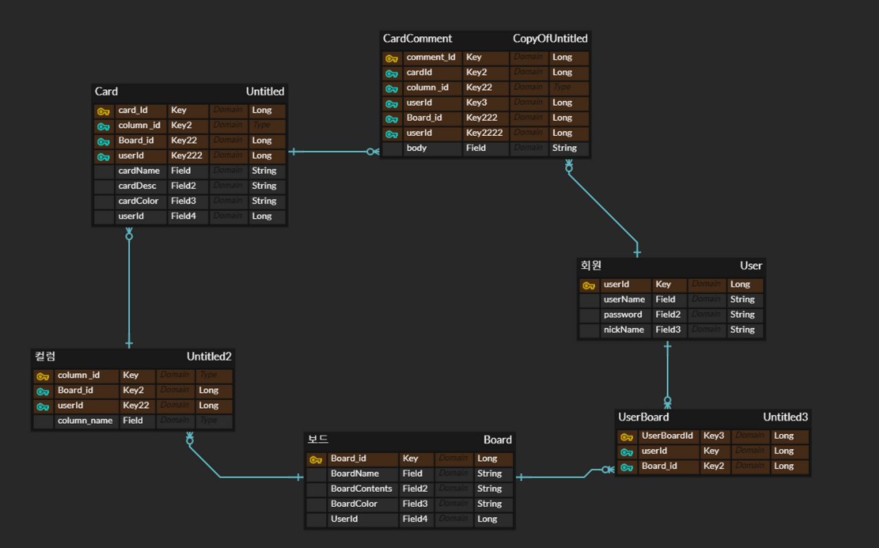 프로젝트 내용 : Trello에서 제공하는 기능들을 직접 구현해 보는 프로젝트다. 가입한 회원을 대상으로 프로젝트를 관리할 수 있는 보드, 칼럼, 카드를 만들 수 있으며, 다른 회원을 초대하여 협업을 할 수 있다.
