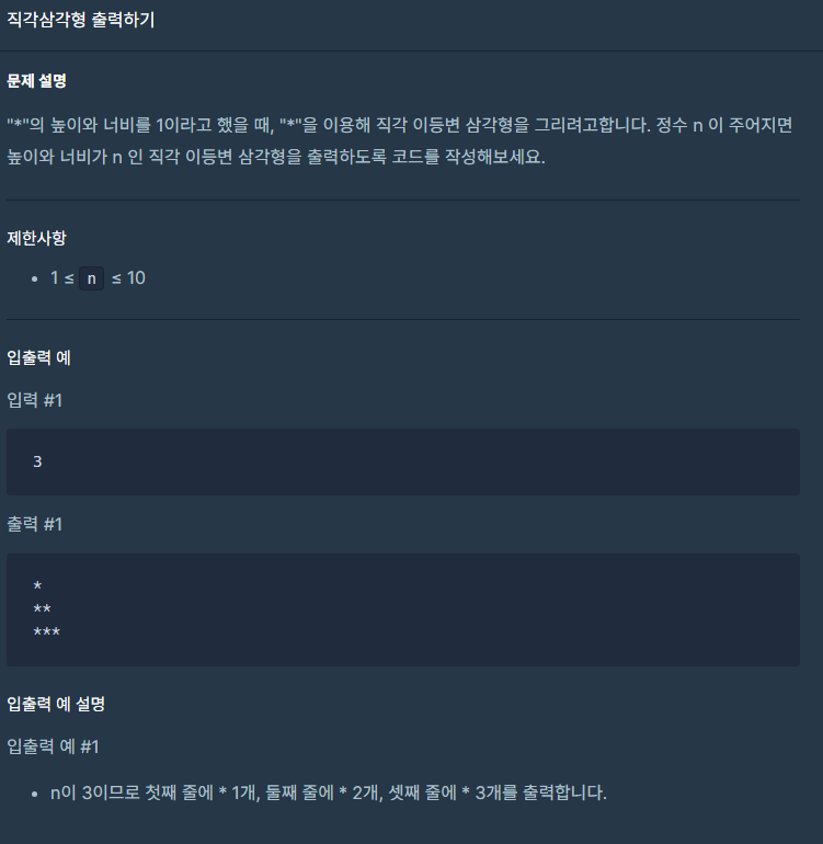 2중 for문을 사용했다. 설명이 불필요한 기본적인 별찍기 문제이다.