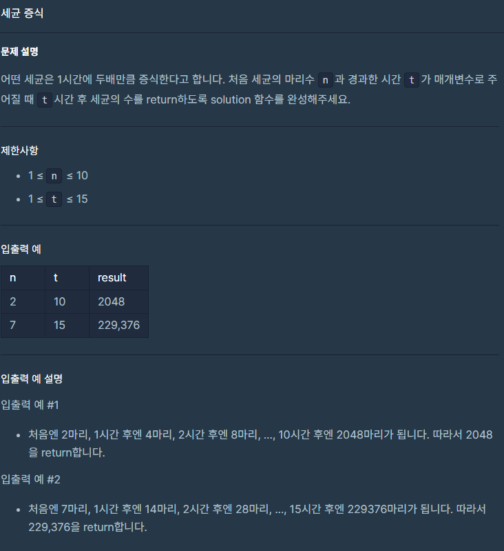 간단한 문제였다. t의 길이만큼 answer을 계속 2배씩 늘려주고 반환하였다.