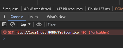 <link rel="icon" href="data:;base64,iVBORw0KGgo="> 를 추가해주면 해결된다.