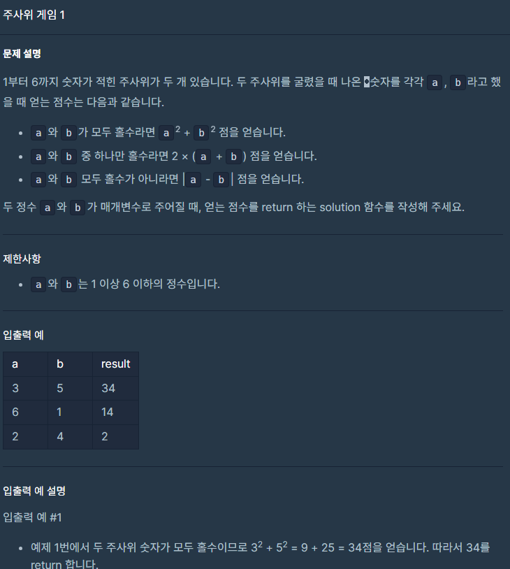 각 조건에 맞게 if문을 걸어주고 값을 맞게 반환했다. 절댓값을 구할때는 Math.abs를 사용해서 a-b의 절댓값을 대입해 줬다.