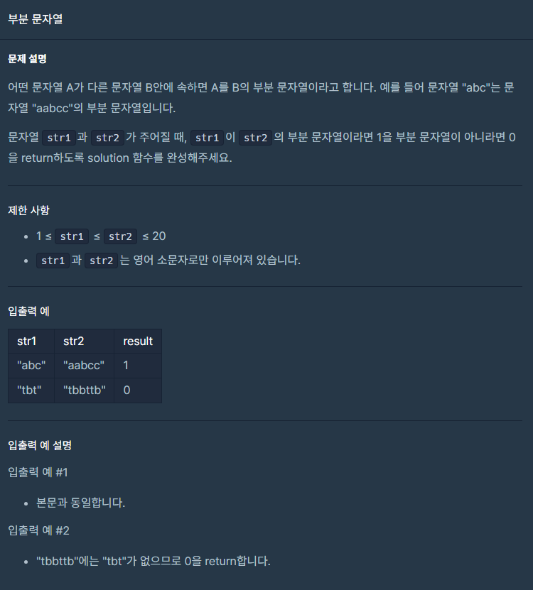 매우 간단한 문제다. str2안에 str1이 포함되어 있는지 비교만 해주면 된다. contains를 사용했다.