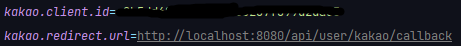 나는 application.properties를 사용하기 때문에 내부에 클라이언트 id, 리다이렉트 url을 미리 넣어줬다.