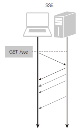 개요프로젝트에서 SSE를 사용해 실시간 알림 기능을 구현하였다. 가볍게 스쳐 지나갔지만 다시 보니 조금 더 공부해보고 싶어서 찾아봤다. SSE의 장단점, WebSocket의 장단점을 비교하여 SSE를 사용이 적합했던 이유를 작성. 1. SSE서버로부터 보낸 메시지를 클라이언트 측에서 받을 수 있는, 단방향 메시지를 지원하기 위한 웹 기술이다. 주로 웹 애플리케이션에서 실시간 업데이트를 제공하는 데 사용되며 서버에서 클라이언트로 데이터를 전송할 수 있게 해 주며, 클라이언트는 이를 수신하여 웹 페이지의 동적 업데이트나 실시간 정보 표시에 활용할 수 있다. 이벤트 스트림(Event Stream) 형태로 데이터를 보내므로, 연결이 한 번 만들어진 후 서버에서 주기적으로 데이터를 전송할 수 있다. 1.1 SSE..